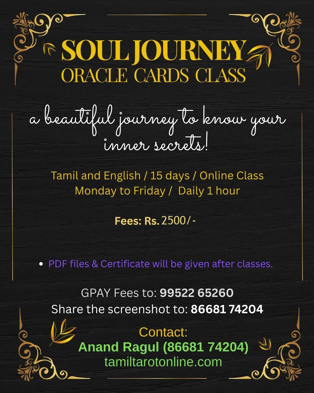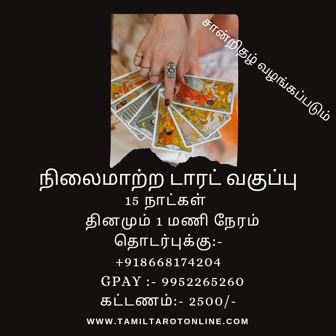 G PAY :- 9952265260 கட்டணம் செலுத்தி screen shot அனுப்பினால், நீங்கள் விரும்பும் நாளில் Google Meet Online டாரட் வகுப்பு
